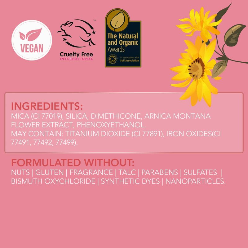Rachel Couture Translucent Powder is a vegan finishing powder infused with Arnica Extract to mattify and set, providing a silky, longwearing shine-free finish.