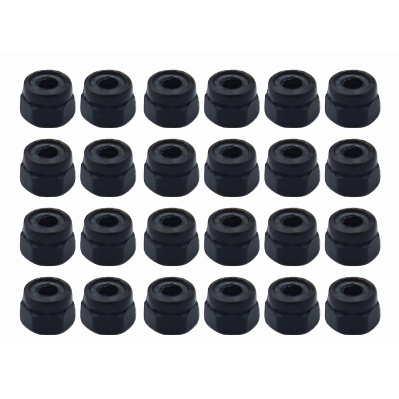 RACOFSB 24 Pcs Fingerboard Locknuts Professional Self Lock Nuts with Nylons Insert (Black)