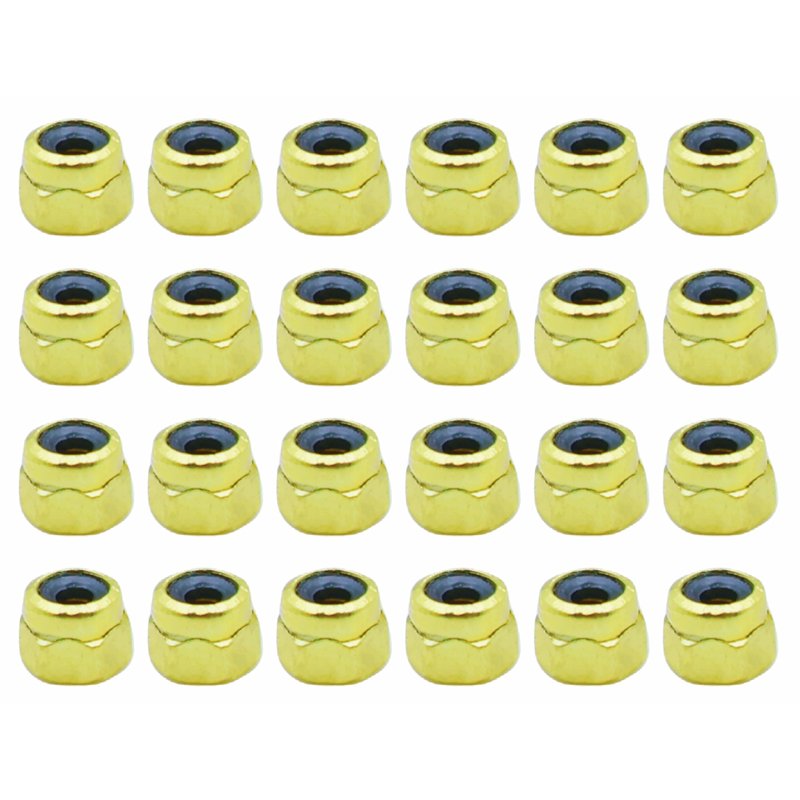 RACOFSB 24 Pcs Fingerboard Locknuts Professional Self Lock Nuts with Nylons Insert (Gold)