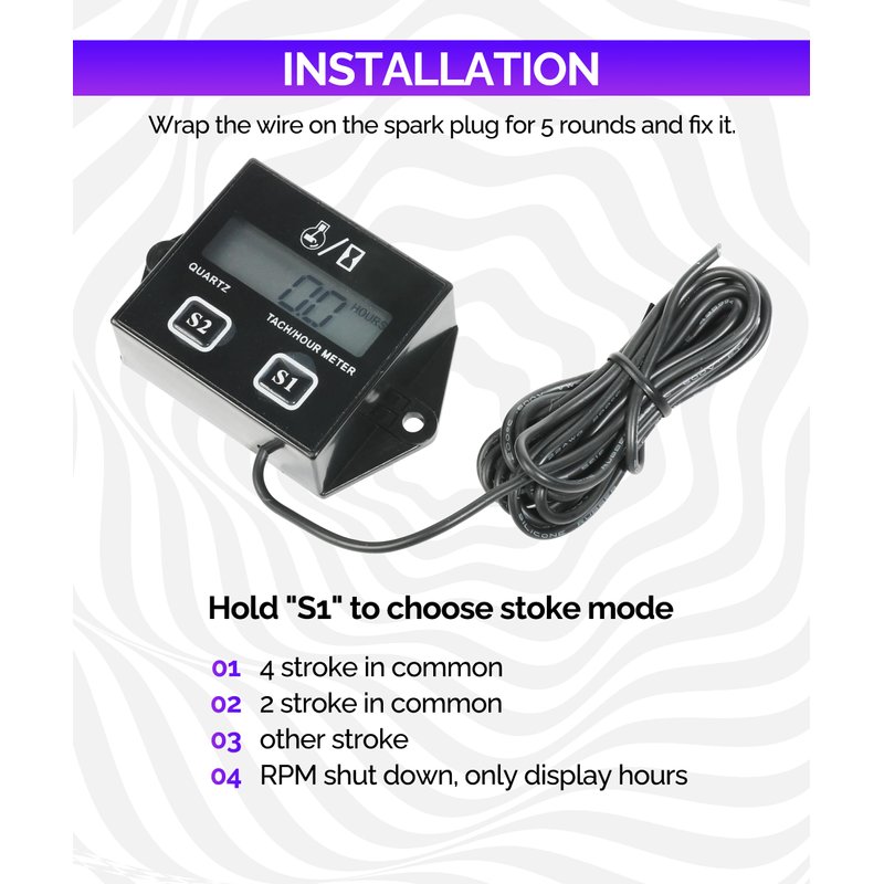 - [Function] The digital tachometer can help you track the hours of engine operation, diagnose the service life of the vehicle, such as oil change, valve adjustment, spark plug replacement, etc. When the engine is turned off, the display screen shows the total running time of the engine and remains visible.