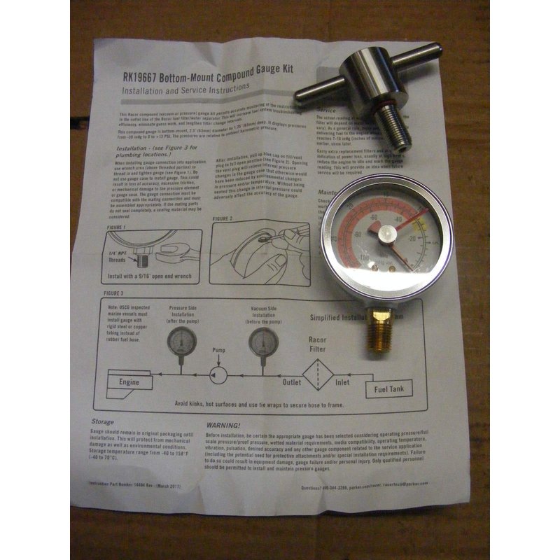 Racor RK19671 Bottom Mount Vacuum Gauge, 1 Pack