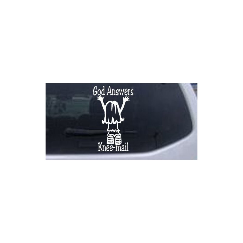 Rad Dezigns White 6in X 3.8in - God Answers Knee-Mail Girl Christian Car Window Wall Laptop Decal Sticker