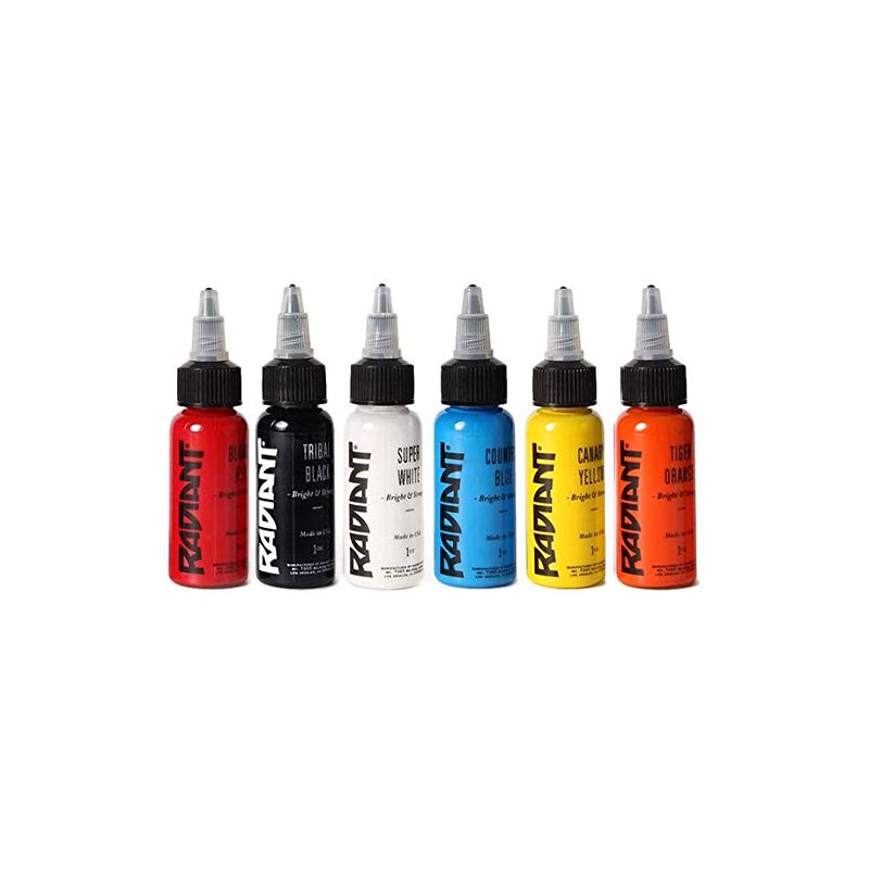 Radiant Tattoo Ink 6 Popular Color Kit Set 1/2oz Bottle