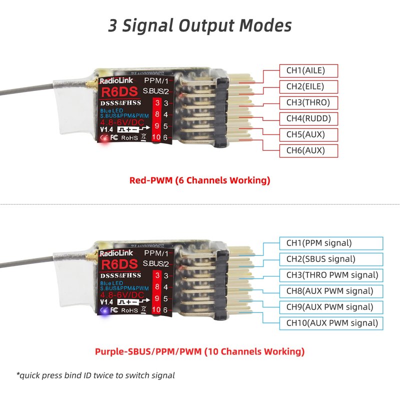 R6DS is only available for Radiolink transmitter products: AT9, AT9S, AT10,AT10II.