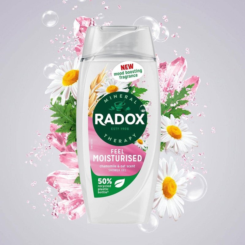 - Make your skin feel calm and restored with RADOX Feel Moisturised Shower Gel, infused with a new mood-boosting chamomile and oat fragrance