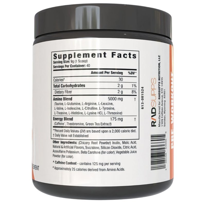 - High Performance Pre Workout For Women and Men - Enhance your work out sessions with RADSUPPS energy supplements aminos. Combines BCAAS and Green Tea to fuel your body with natural energy.