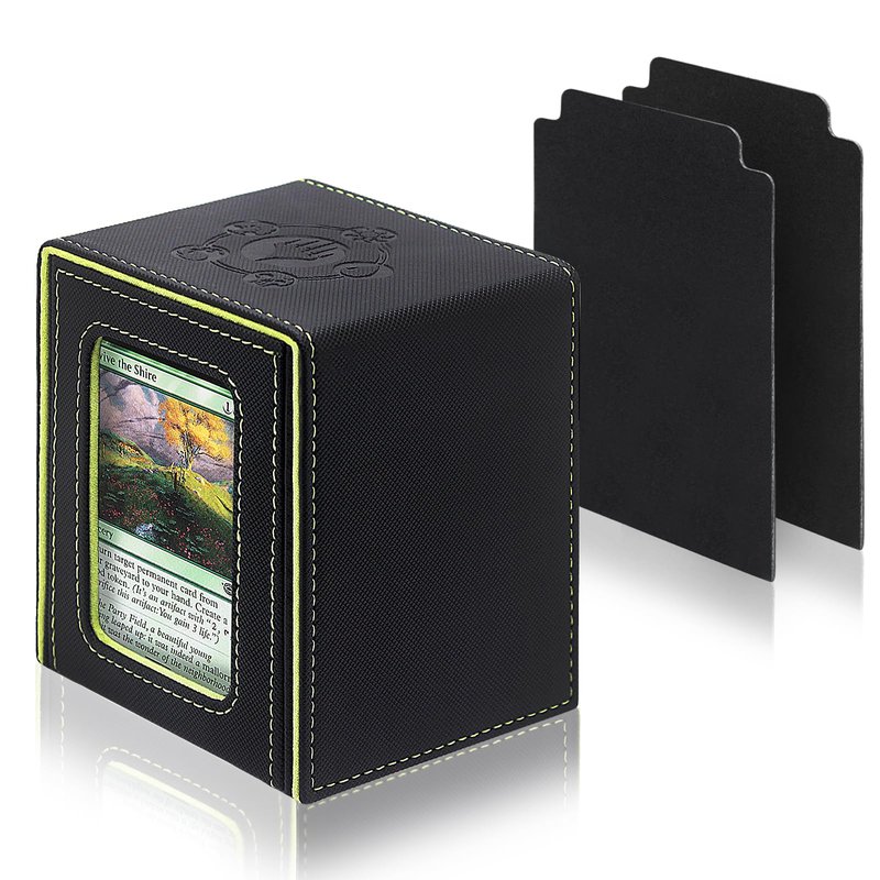 RADWIMPS Deck Box For MTG Commander Deck, Fits 100+ Cards, Magnetic Card Box Organizer With 2 Dividers & Window Display, Perfect for Magic Commander TCG, CCG Cards (Black&Green)