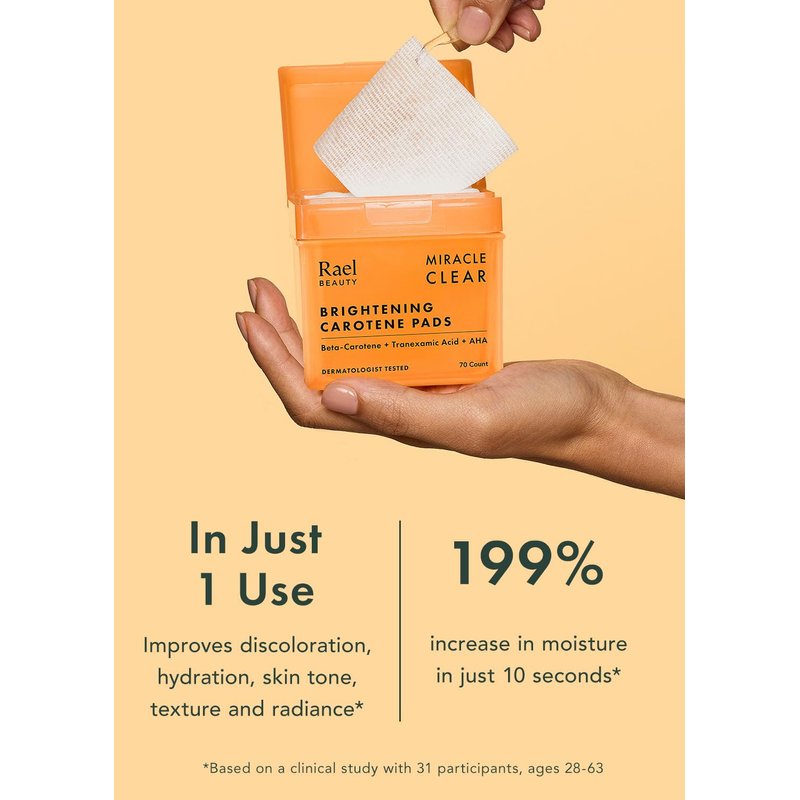 Rael Toner Pads - Cotton Pads for Face, Dual Textured with Carotene, AHA, Niacinamide, Hyaluronic Acid, Facial Radiance Pad, Exfoliating, Hydrating, Korean Skin Care, Vegan (70 Count)