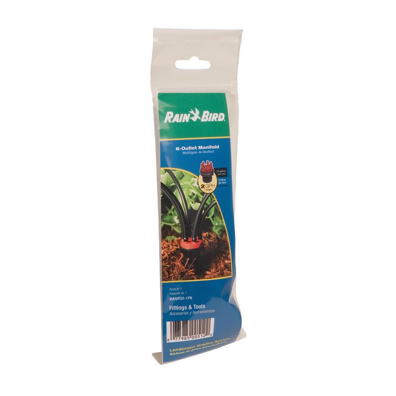 Rain Bird MANIF21PK Drip Irrigation 6-Port Manifold, 2 Gallon Per Hour Flow Rate Per Port