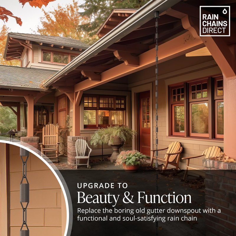 - Elevate Your Exterior - Replace unsightly gutter downspouts with this stunning rain chain. Enjoy the mesmerizing sights and soothing sounds of rain cascading gracefully down, adding beauty to any outdoor space.