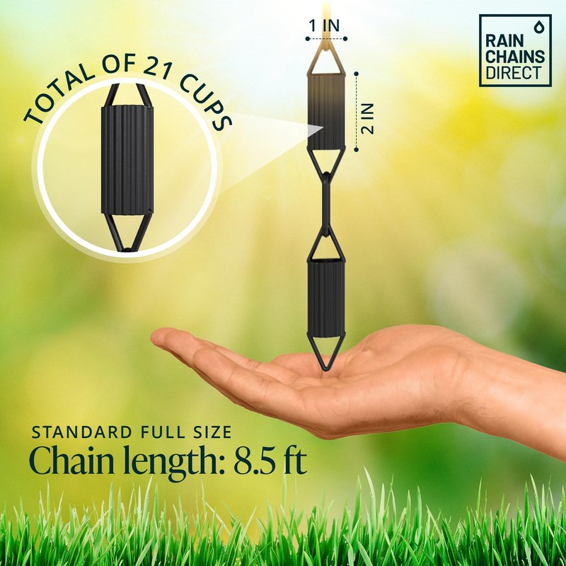 Rain Chains Direct - Manicotti Rain Chain - 8.5 FT - Durable Black Powder-Coated Aluminum - Premium Rain Chains for Gutters