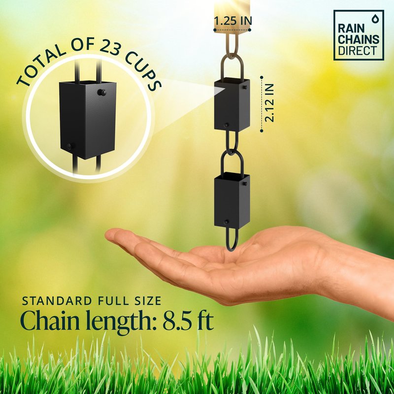 Rain Chains Direct - Square Link Rain Chain - 8.5 FT - Durable Black Powder-Coated Aluminum - Premium Rain Chains for Gutters