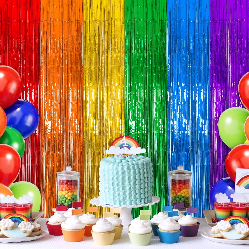 - 🌈 Vibrant Rainbow Decor: Create a magical atmosphere for your rainbow-themed birthday party with 1 pack of red, orange, yellow foil fringe curtains, and 1 pack of green, blue, purple foil fringe curtains. Each curtain measures an extra-large size of 3.3 x 6.6 ft, perfect for adding a burst of color to your decorations.