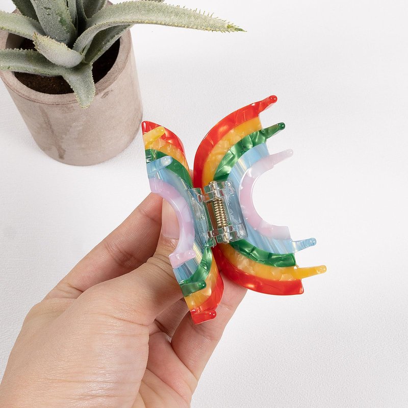 - High Quality Acetate Hair Claw- Shiny bright colors rainbow hair claw clips non-slip are well-made of quality safe metal alloy spring, acrylic cellulose acetate material. Easy open and strong hold thick,thin,fine,curly hair well,no stiff!