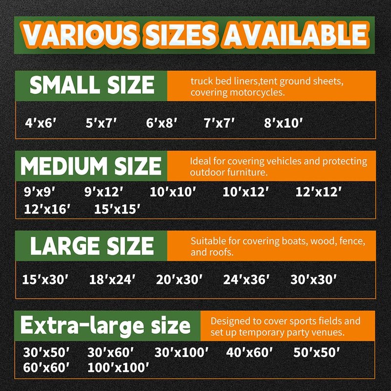 - 【MULTIPURPOSE USE】Protect your house, car, truck, tent, pet cages, boat, or backyard pool, outdoor furniture from rain, sand, dirt, and sunlight, weather resistant, you never know how convenience of this tarp will be.