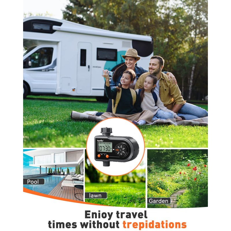 - 【Advanced Watering System】>> Built-in high-precision IC chip water timer, has a low-pressure fully enclosed solenoid valve can quickly process complex watering programs, control the on-off valve more stably, and reduce power consumption. 2 AA batteries available for about 1 year.