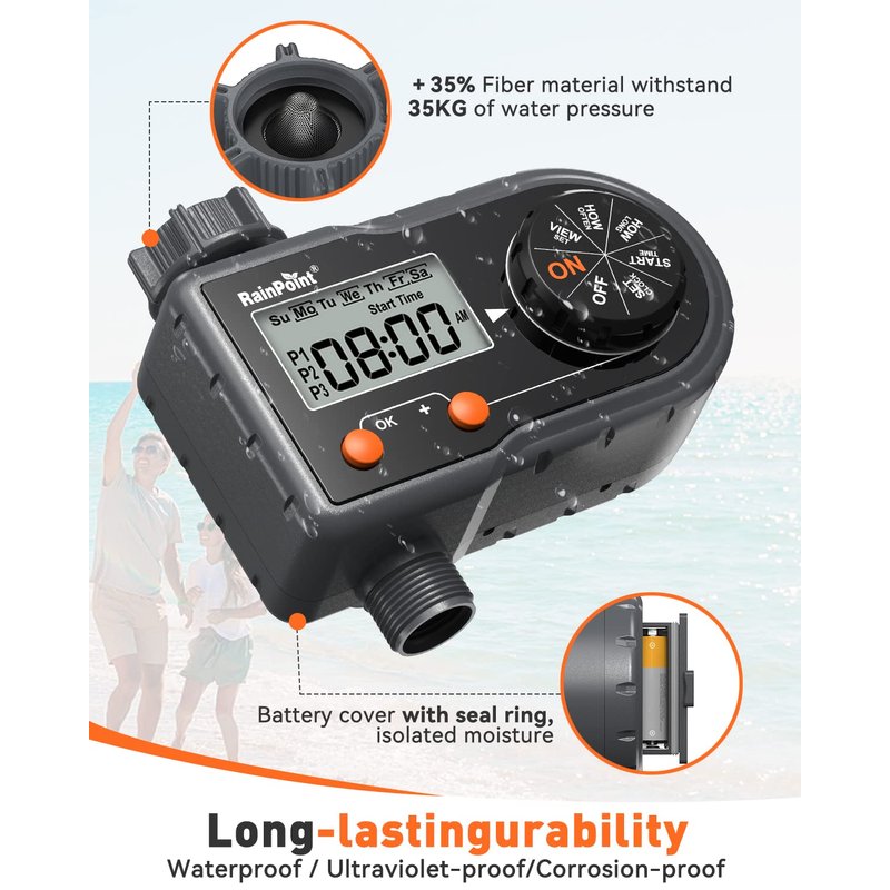 RAINPOINT Sprinkler Timer, Hose Timer with 3 Individual Programs, Water Timer for Garden Hose Faucet, Programmable Automatic/Manual Irrigation System, for Specific Days or Daily Outdoor Lawn Watering