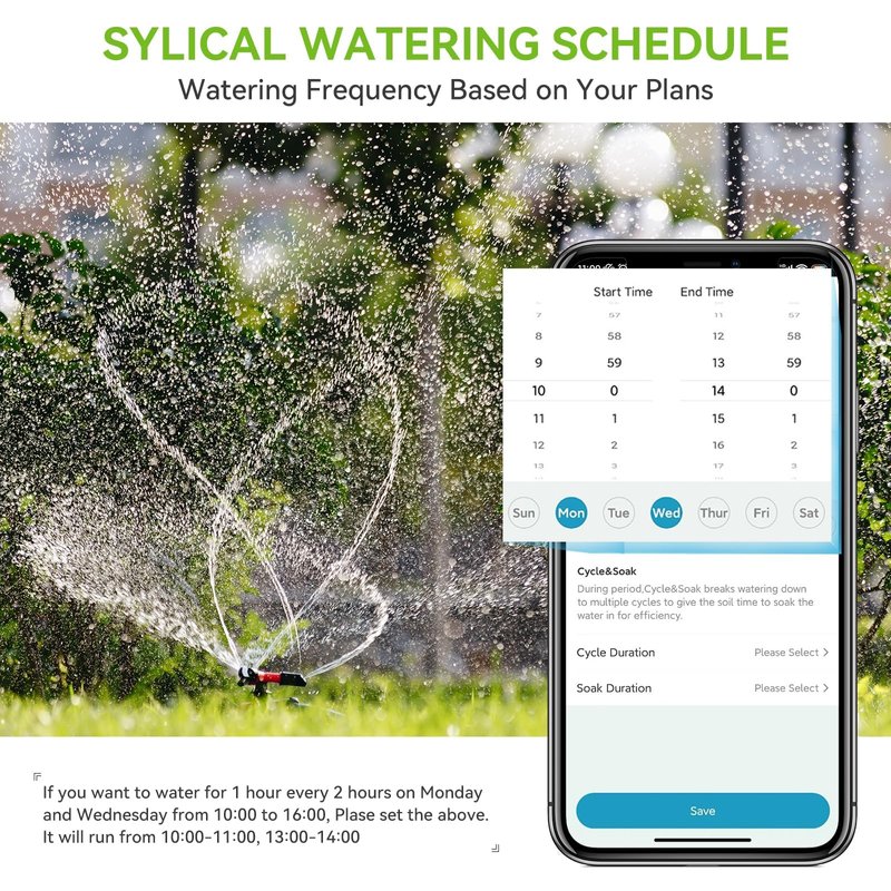 - Flexible Watering Schedule: Each WiFi hose timer can set multiple different watering schedules to meet your abundant watering needs. You can also choose from two watering modes: normal cycle mode and soaker cycle mode to help you get the most out of every drop and save on your water bill.