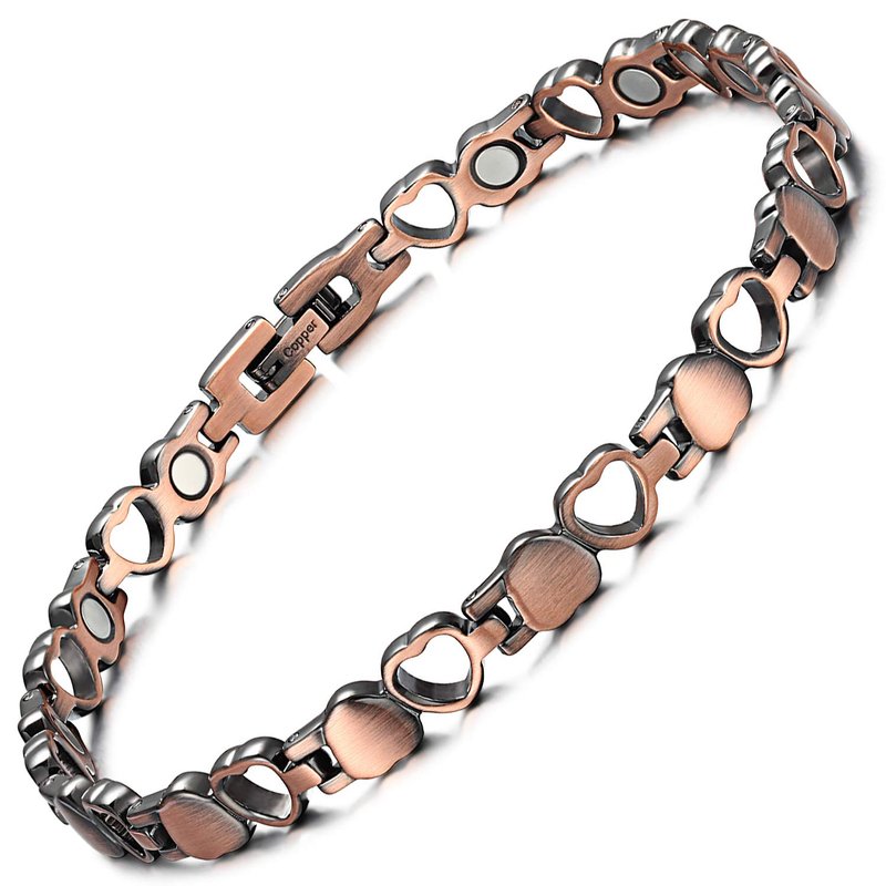 RainSo Pure Copper Heart Design Womens Magnetic Anklets 3500 Gauss Adjustable with Gift Box