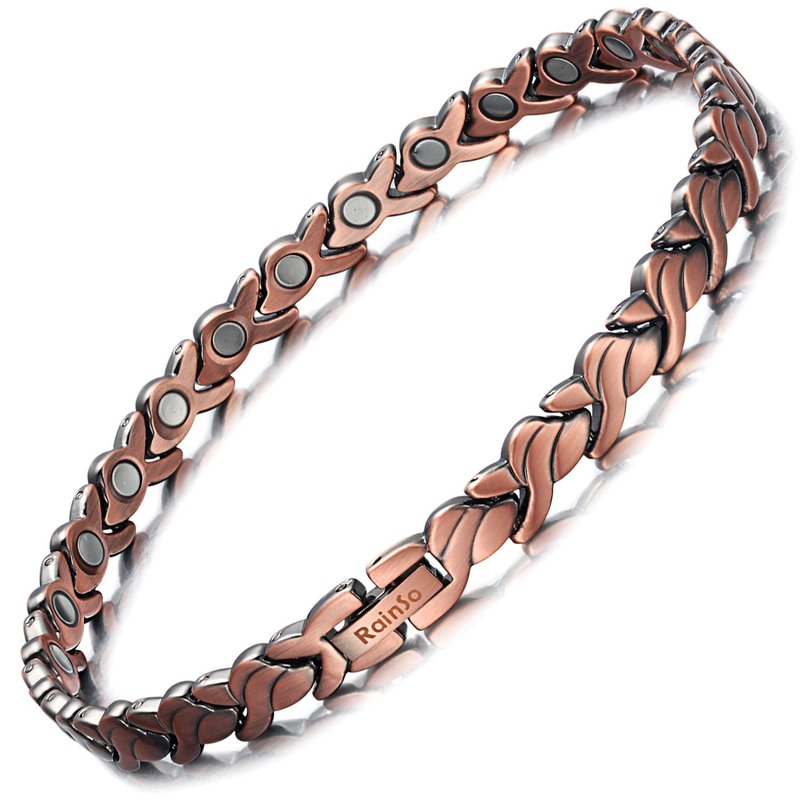RainSo Womens Copper Magnetic Anklets Petal Design 3500 Gauss Adjustable with Gift Box