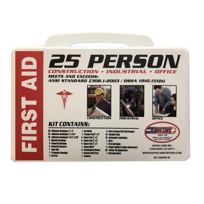 Rapid Care First Aid RC-25MAN-W 25 person 166 Piece ANSI/OSHA Compliant First Aid Kit in Wall Mountable Poly Case