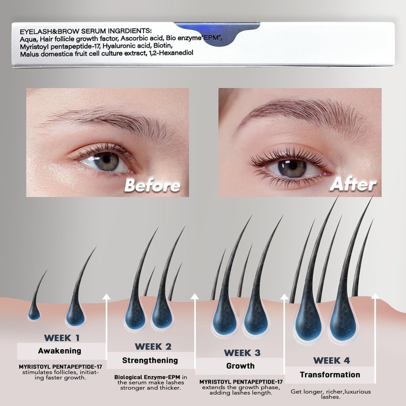 - 【Stronger and healthier】Ours eyebrow growth serum contains myristyl pentapeptide-17, cupric tripeptide-1, and acetyl tetrapeptide-5. We innovatively incorporate the EPM biological enzyme ingredients. After scientific and natural verification, we can achieve longer and thicker eyelashes and eyebrows in just 28-40 days, delivering the perfect eyebrow enhancement effect!