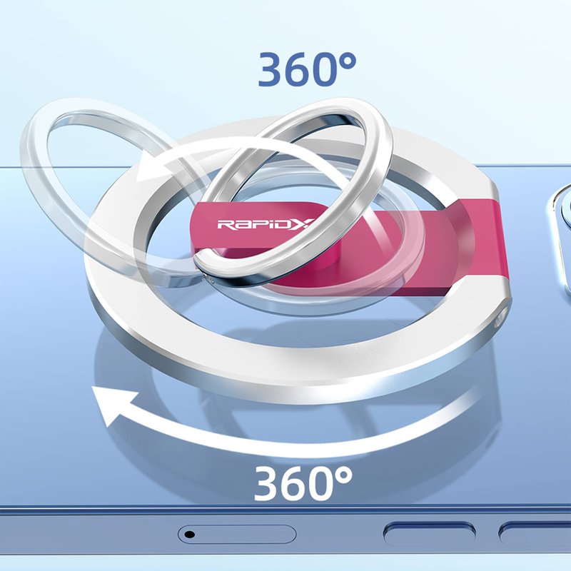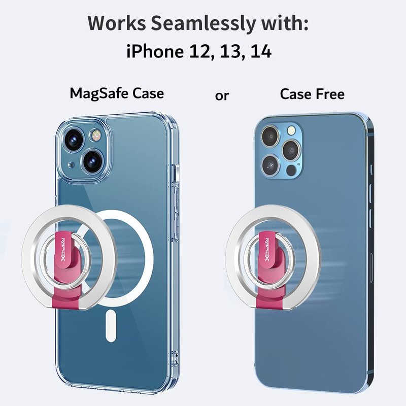 RapidX Snapo 2-in-1 Magnetic Phone Grip & Stand, Holder with Adjustable Kickstand, Compatible with iPhone 12, 13, 14 Pro, Pro Max, Mini (Pink)