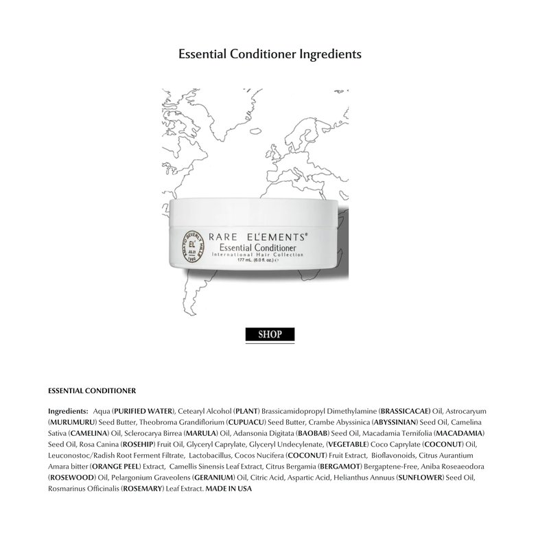 Rare Elements ESSENTIAL CONDITIONER - Reconstructing Daily Hair Masque 6 Ounces