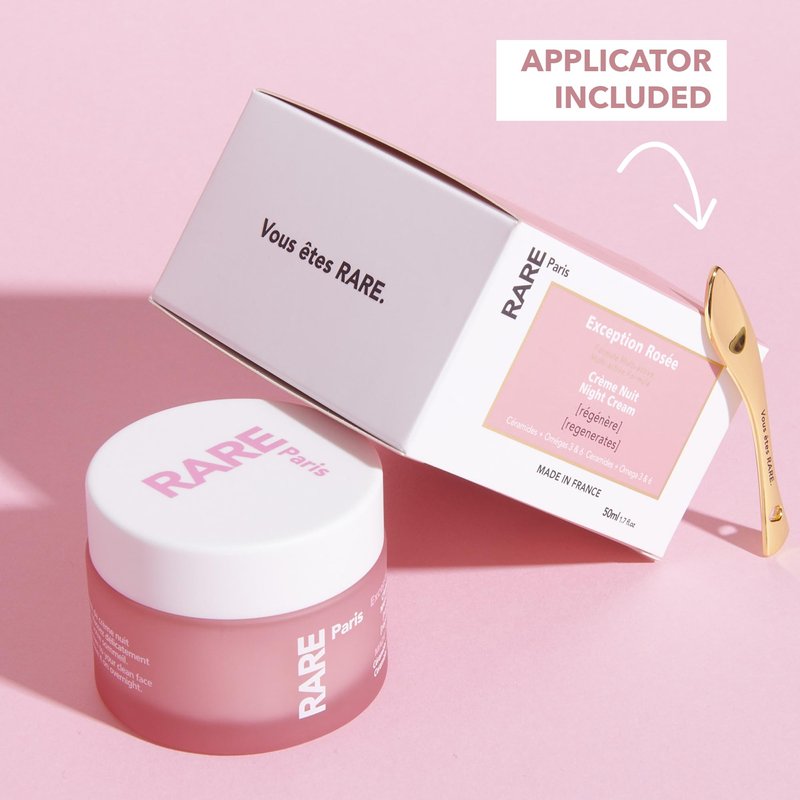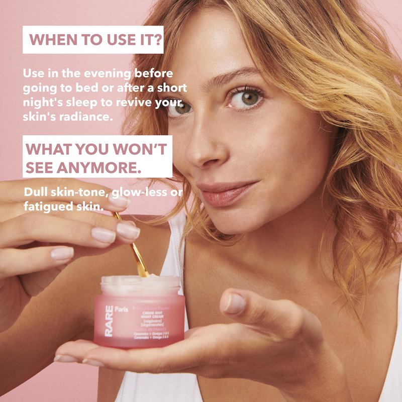 RARE Paris - Exception Rosée - Regenerating Night Cream with Ceramides, Omega 3&6 and Immortelle. Protecting, hydrating, regenerating - Made in France