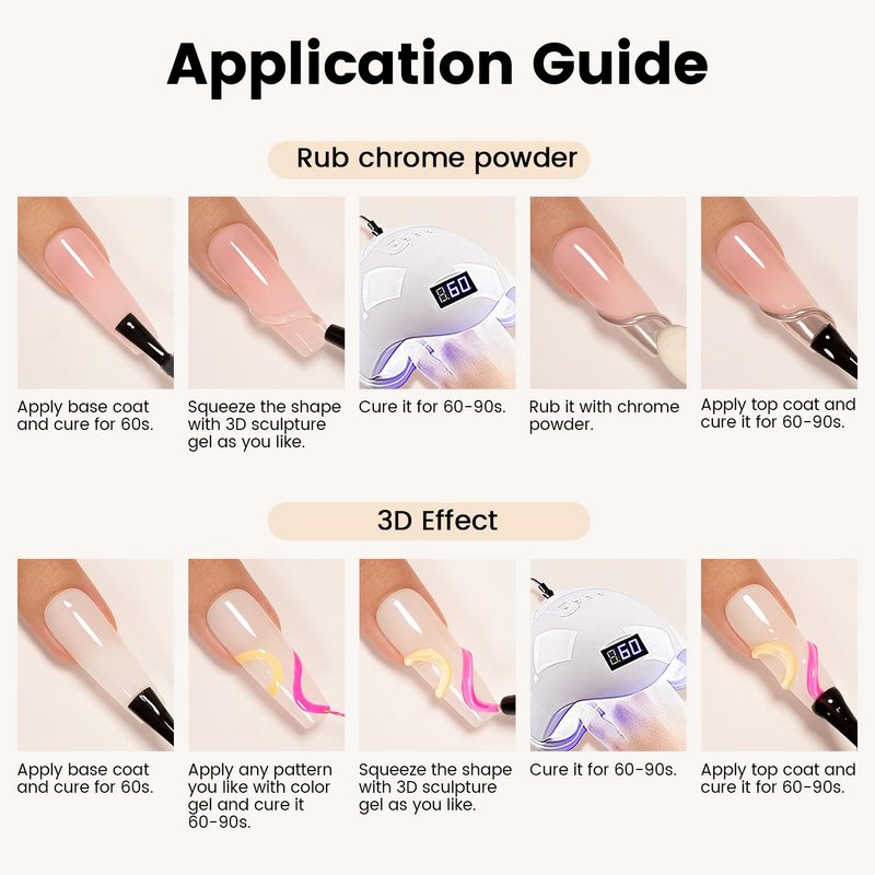 - PERFECT FOR 3D CHROME NAIL ART: Ideal for achieving stunning 3D chrome nail art effects, this sculpting gel provides the perfect base for applying chrome powders, ensuring a smooth and flawless finish that highlights the metallic and reflective qualities of the chrome pigments