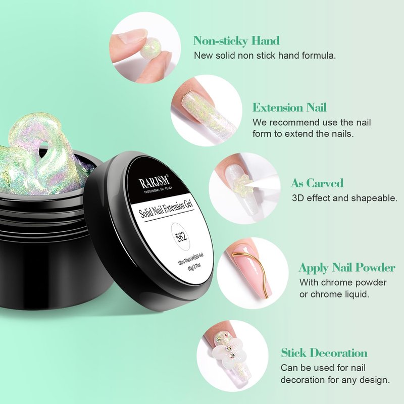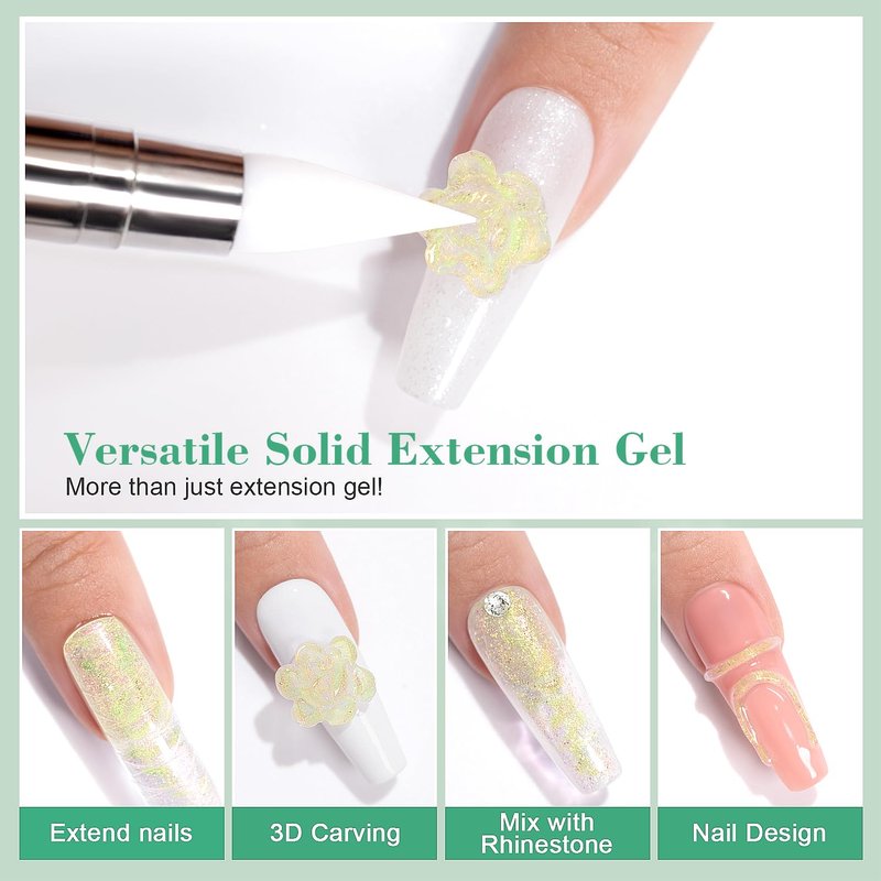 - VERSATILE EXTENSION GEL: More than just extension gel! DIY designs, 3D carve patterns, and nail extensions, it's easy to achieve as long as you have a solid nail extension gel. It is a non-floating formula and its non-sticky texture makes manicures more convenient and interesting.