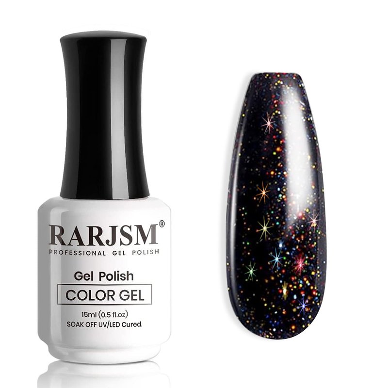 RARJSM Gel Nail Polish Black Glitter Sparkly Chunky Iridescent Rainbow Shimmer Pigments Nail Gel Polish Soak off Led UV Curing Required for Nail Art Salon Manicure 15ml Fall Winter Christmas