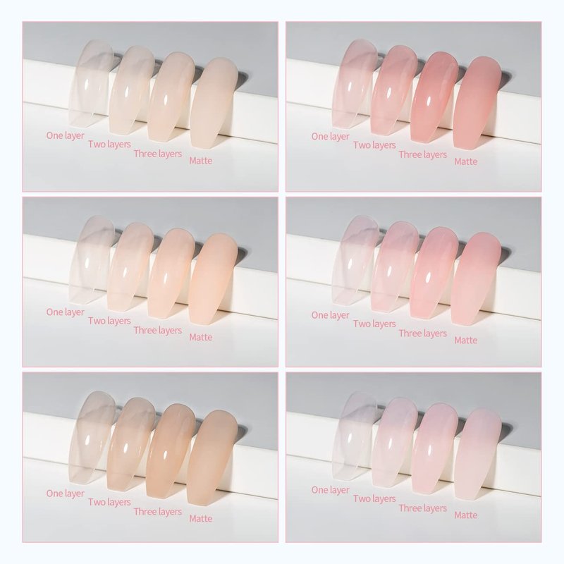 - 6PCS ICY JELLY COLLECTION:This particular set includes a collection of classic, natural, and neutral shades.Package includes 6 bottles 7.5ml RARJSM sheer jelly nude pink rose red brown color gel nail polish set.Nude nails are slightly translucent, you'll be dizzy with delight wearing this nude colored gel nail polish.Apply one layer, two layers and three layers can get different effects