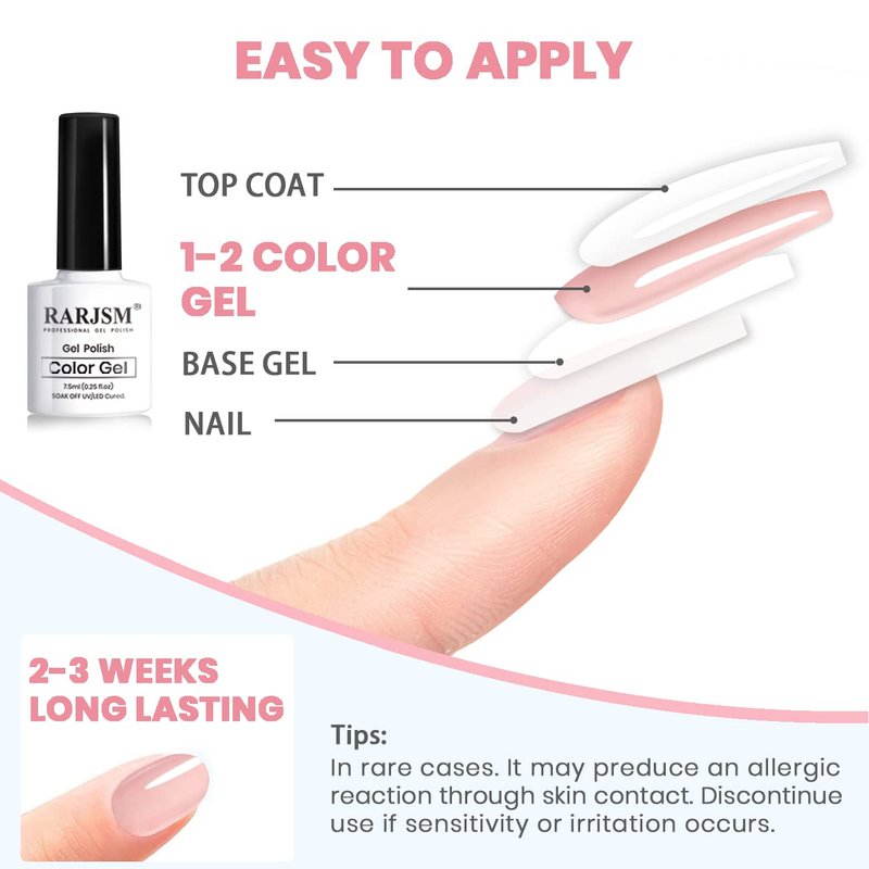 - EASY APPLICATION AND GOOD TENACITY:The pink nude gel polish set has been made with non-toxic gel formulas that make them safe for your skin and long-lasting for at least 21 days. --With base gel top coat under the full application process.Base and top coat is required