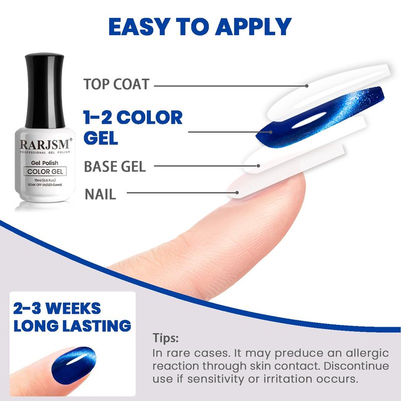 - 【HOME SALON QUALITY】Glitter cat eye gel nail polish is good choice for use in a professional nail salon or nail starter at home.You can design your own manicure at home to show your style. Remember the gel polish needs to be cured under LED or UV nail lamp. Average for Nail Lamp 60-120 secs.