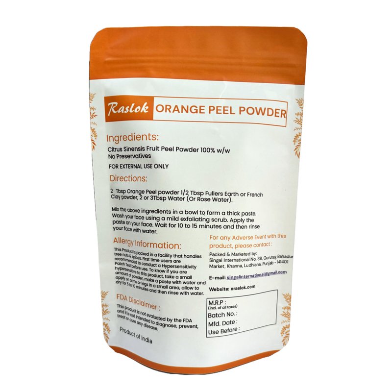 - Unadulterated Beauty: Raslok Pure Orange Peel Powder is pure and free from additives or artificial ingredients. It's a testament to the authentic and unspoiled power of nature.