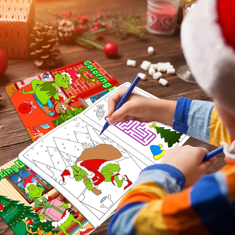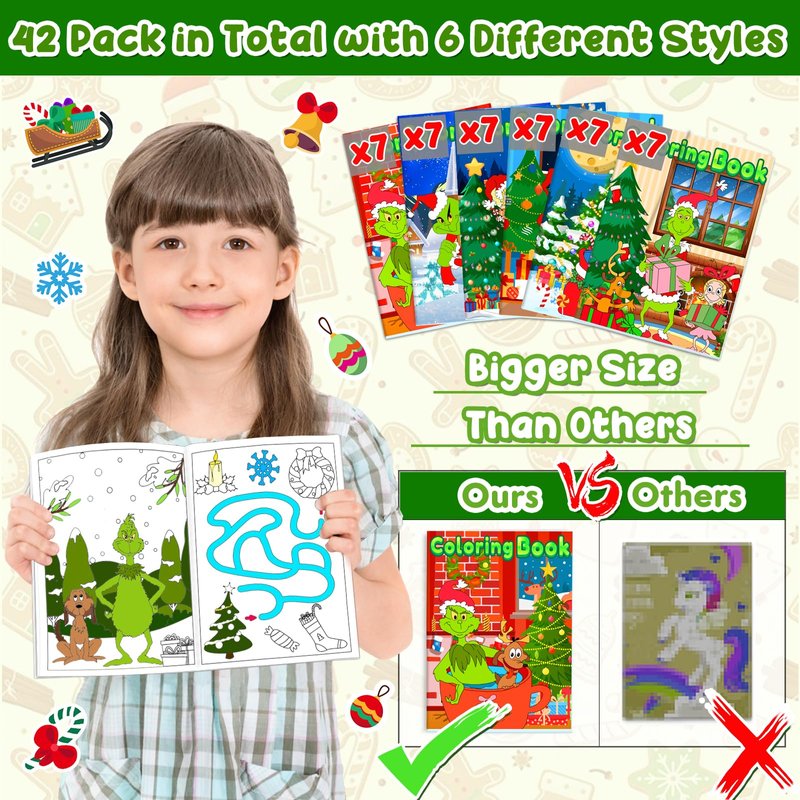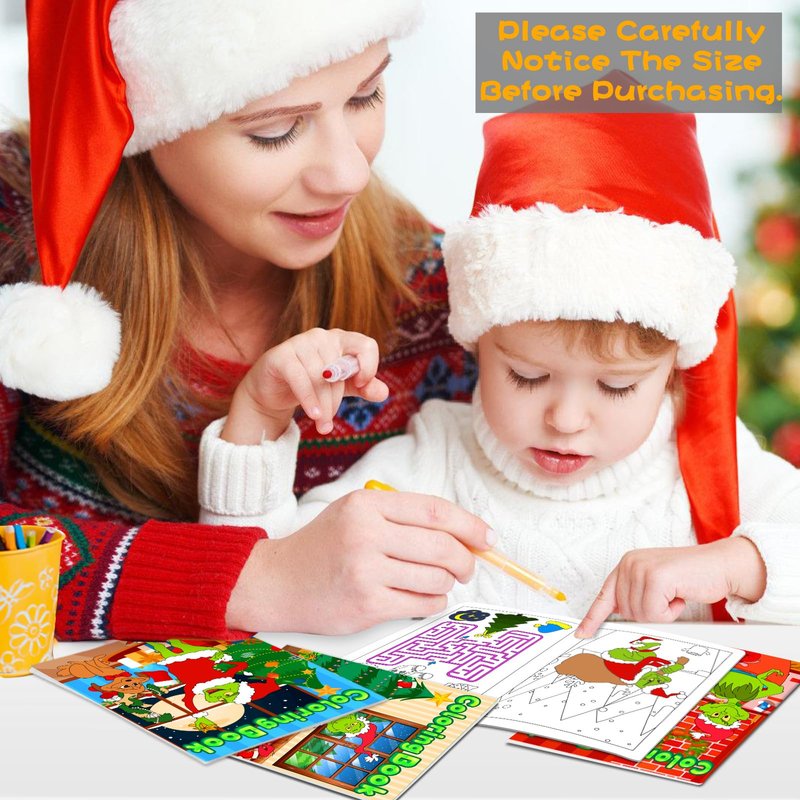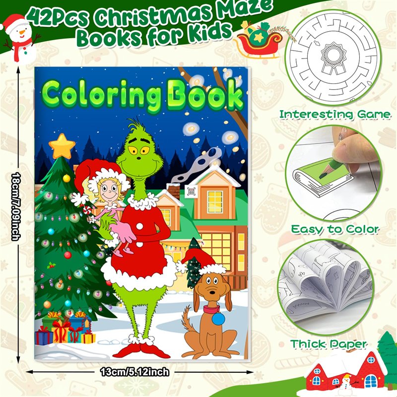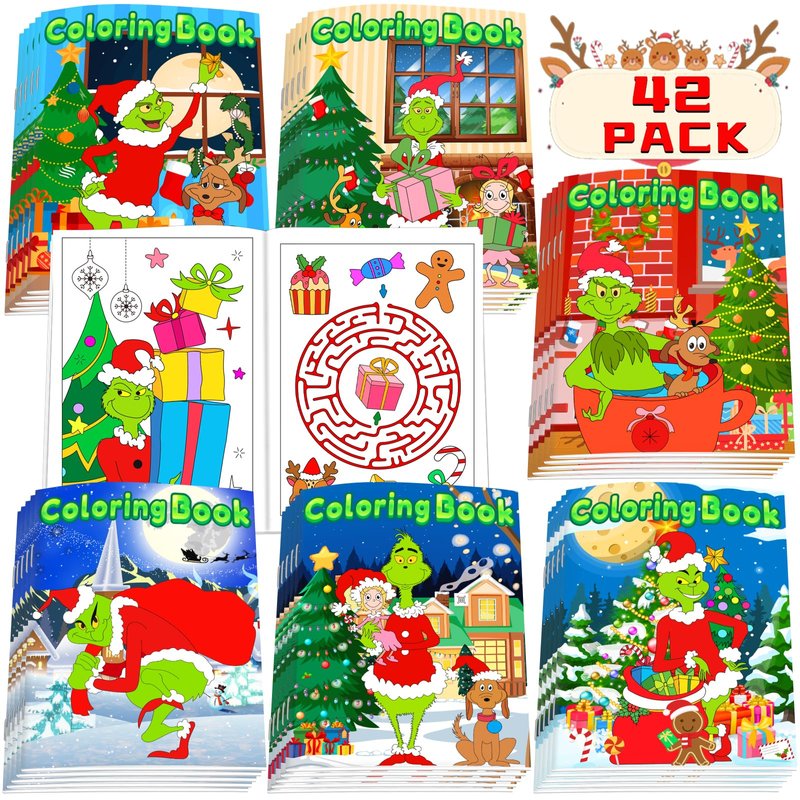 - 【Christmas Coloring Book for Kids】42 Pack Grinches Christmas coloring books in 6 styles. Each mini coloring book for kids has 8 pages in double-sided printing. (96 various Christmas patterns and maze games in total) The quantity is enough to meet your DIY needs.