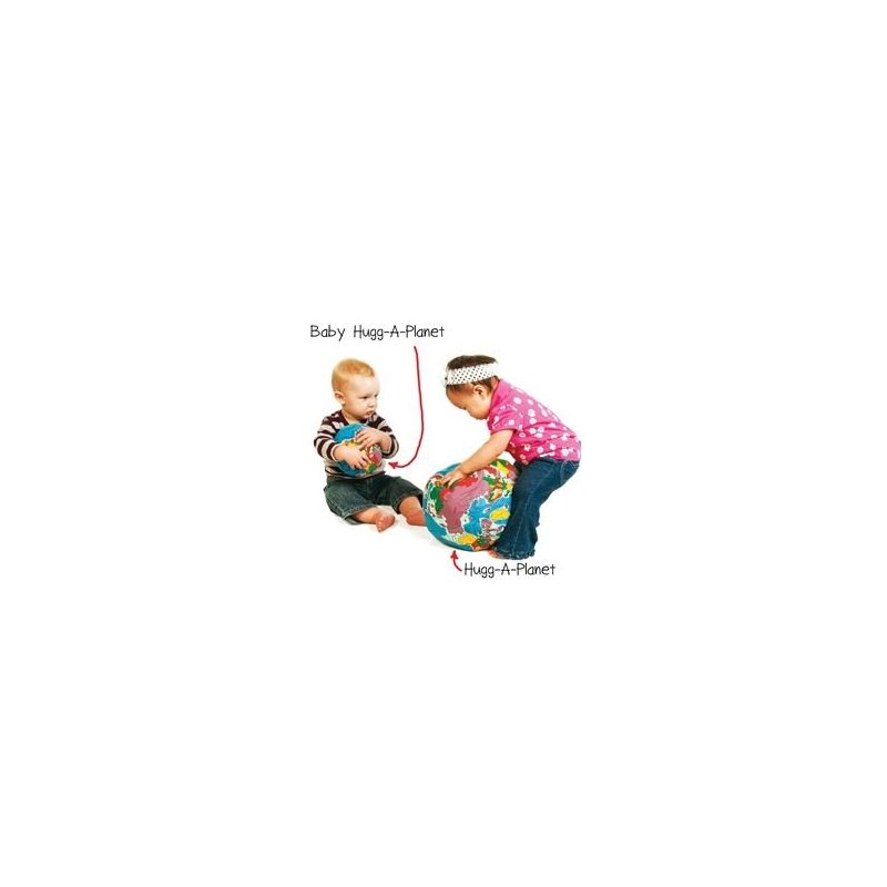 - Rattle Baby Planet: Enjoy the 6” in version of the Hugg-A-Planet line. Comes with two noise makers inside one squeaks, one rattles. Continents and Oceans labeled as well, a fantastic toy for young children!
