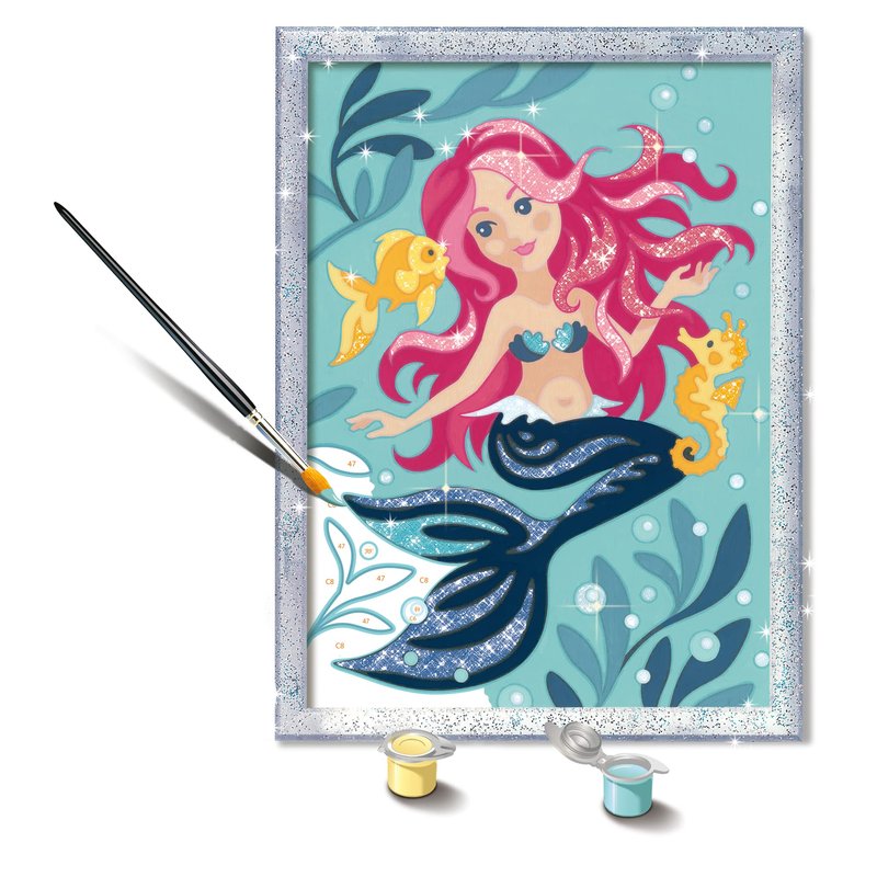 - About this image: Watch your child’s imagination and creativity sparkle beneath the magical sea with a mesmerizing “Enchanting Mermaid” CreArt Painting by Numbers set!