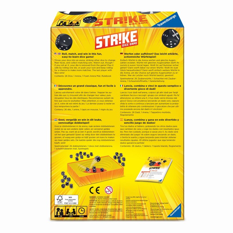 - ENGAGING BRAIN GAME: Ravensburger Strike stimulates your mind as you roll dice, match numbers, and strategize your moves - an ideal activity for kids, teens, and adults