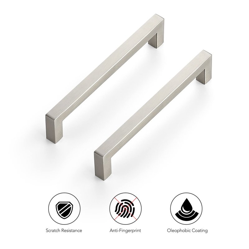 - Simple look: The Brushed Nickel cabinet handles have a wide appeal across a range of kitchen cabinet doors and drawers. The Satin Nickel handles have a clean and timeless look that works with farmhouse, vintage, traditional and transitional styles.