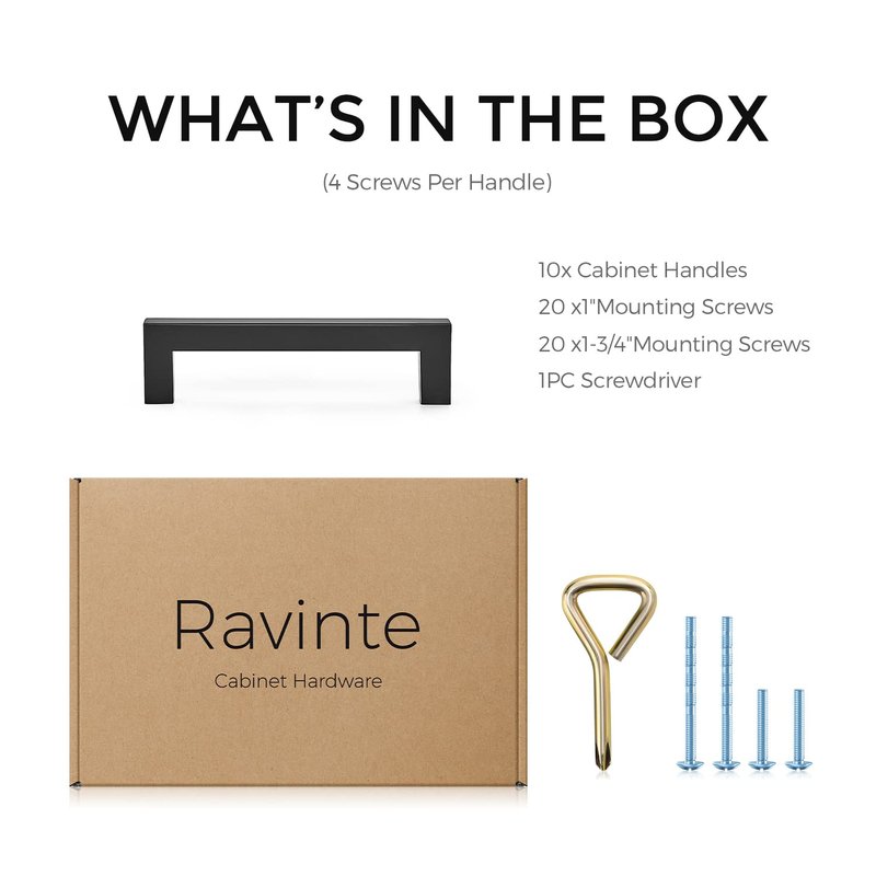 - Easy Installation: Each Ravinte cabinet pulls included 1inch and 1.75inch breakaway screws with standard 8/32 thread for your cabinet doors and drawers. Each set come with a screwdriver
