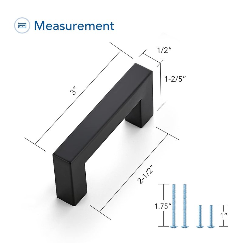 - MODERN SQUARE DESIGN: The simple and modern design of the matte black square drawer pulls for cabinets is ideal for different styles of cabinets: kitchen cabinets, dresser drawer, bathroom drawers, bedroom cabinets door, etc. These handles hardware will give your cabinets a clean and finished look
