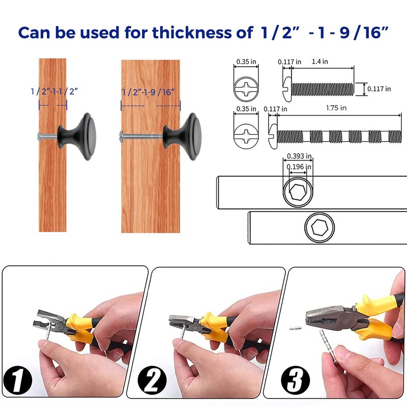 - Size of Round Knobs:Diameter 1-1/4"; Base Diameter: 3/4"; Height: 7/8"