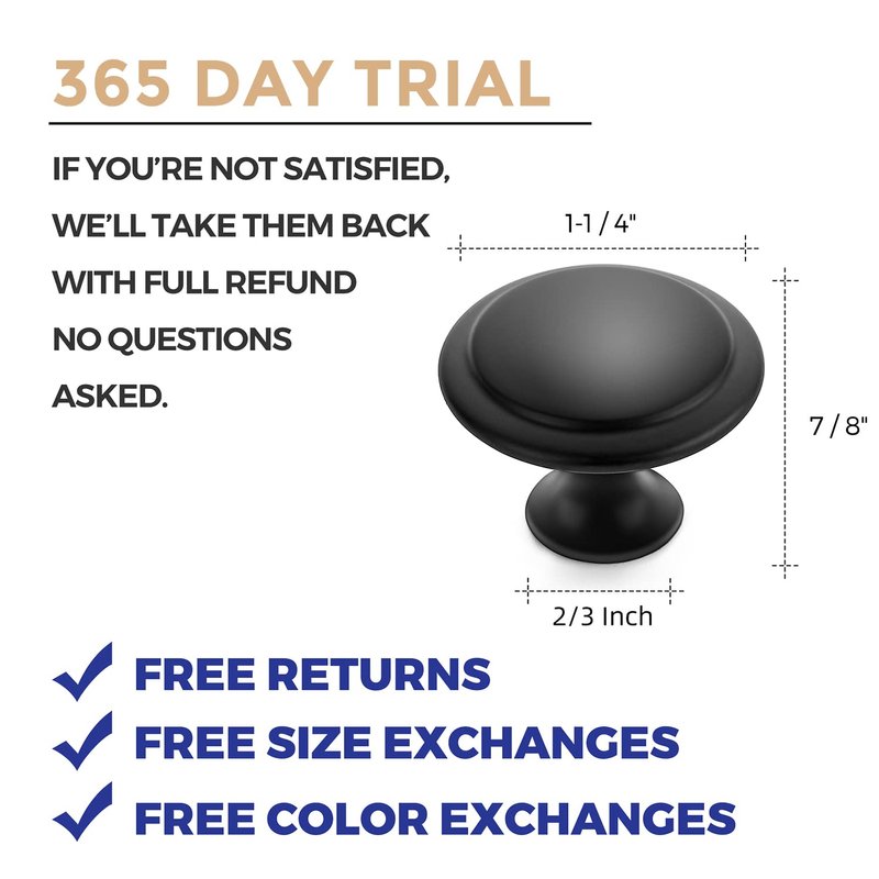- Simple look: The black cabinet knobs have a wide appeal across a range of kitchen cabinet doors and drawers. The matte black knobs have a clean and timeless look that works with farmhouse, vintage, traditional and transitional styles.