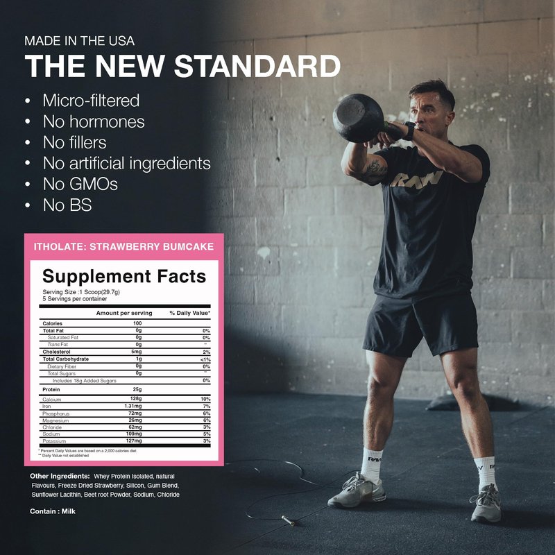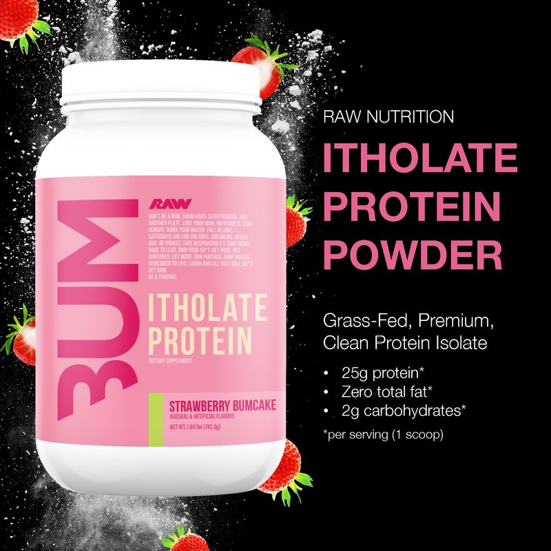 - Strawberry Bumcake Itholate Protein Powder: RAW Nutrition’s Itholate Protein is a clean, premium protein powder that delivers all the essential amino acids your body needs to support muscle growth and repair. Each serving is packed with 25g of the highest quality protein to make sure you're reaching maximum potential. 25 servings, 2.25 lbs.