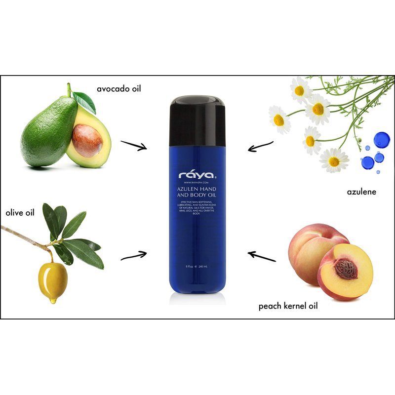 Raya Azulen Hand and Body Oil 8 oz (451) | Softening and Natural Blend of Oils for Hands, Arms, Legs, and Body | Great as a Body Massage Oil | Great for All Skin