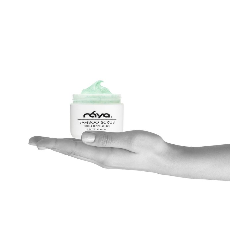 Bamboo Facial Scrub is an herbal-based exfoliating treatment cream that combines fine ground Bamboo with Jojoba Beads and micro-fine French Talc. It effectively removes excess surface cells and lifts away dull, dry skin for improved texture and healthy clarity. Chamomile Extract, Cucumber Extract, Allantoin, and Chlorophyll soothe the skin, while Sodium PCA, Aloe Vera Gel, Mango Butter, and Safflower Oil moisturizing it. Papaya Extract, Pineapple Extract, Bromelain Enzymes, and Papain Enzymes refine pores. Dimethicone and Glycerin protect the skin. This product helps smooth fine lines and wrinkles, lighten skin discoloration, and stimulate cellular regeneration. It has a nourishing, emollient, cream based formula. Bamboo Facial Scrub (R-125) | RAYA