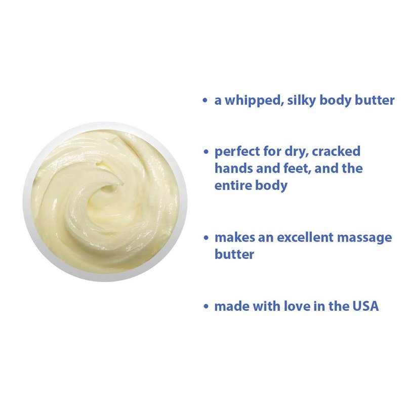 - Whipped, silky moisturizing body butter, Excellent for dry, cracked hands and feet