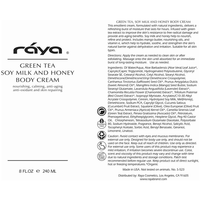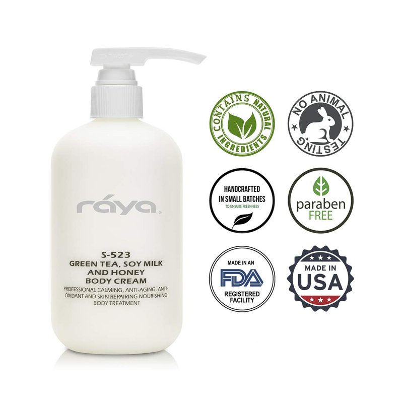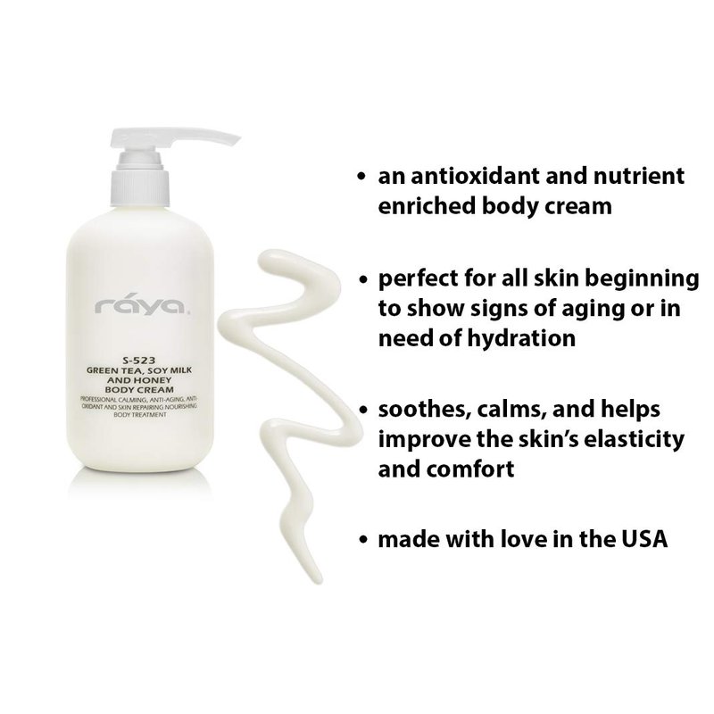 Raya Green Tea, Soy Milk, and Honey Body Cream 16 oz (S-523) | Nourishing, Calming, and Anti-Aging Body Cream | Protects and Refines Skin